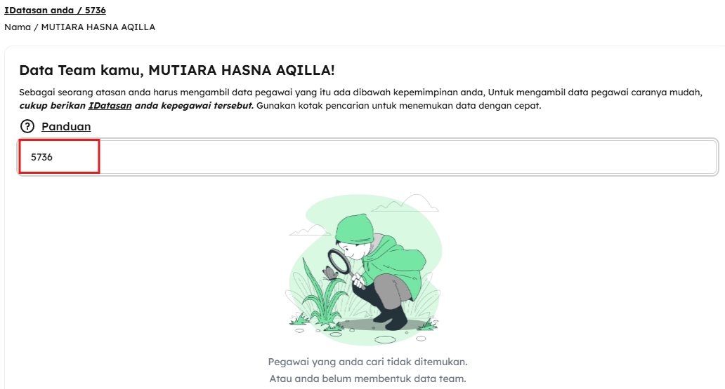 3. Anda dapat mencari nomor pegawai anggota anda pada kolom pencarian di bawah ini.