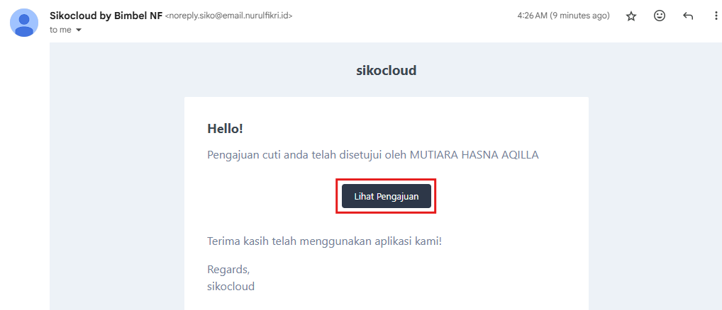Pegawai Melihat Notifikasi Respon Pengajuan Cuti Melalui Email