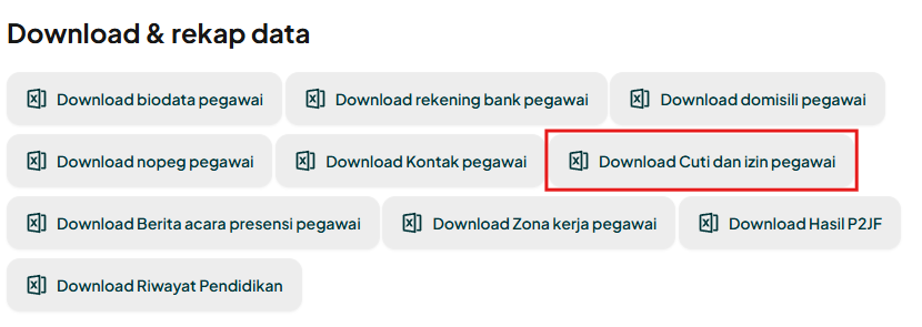 3. Pada halaman Download dan Rekap Data, klik "Download Cuti dan Izin Pegawai".