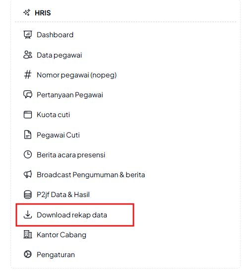 2. Pada dropdown "Fitur Khusus SIKOCLOUD", pilih role "HRIS", lalu klik menu "Download Rekap Data".