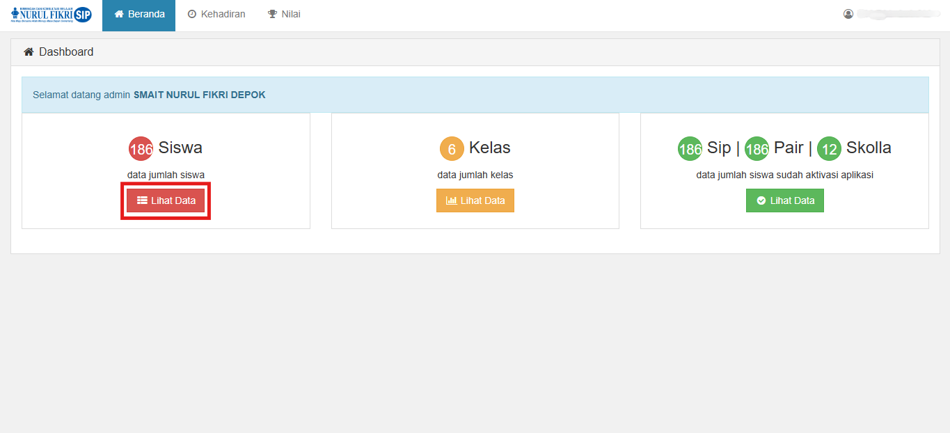 2. Pada panduan kali ini, kita akan melihat semua data jumlah siswa yang berada di "MENU BERANDA". Anda bisa menekan tombol "LIHAT DATA".