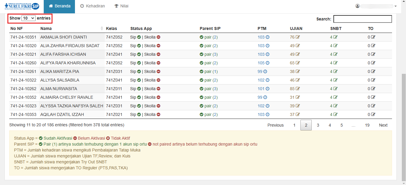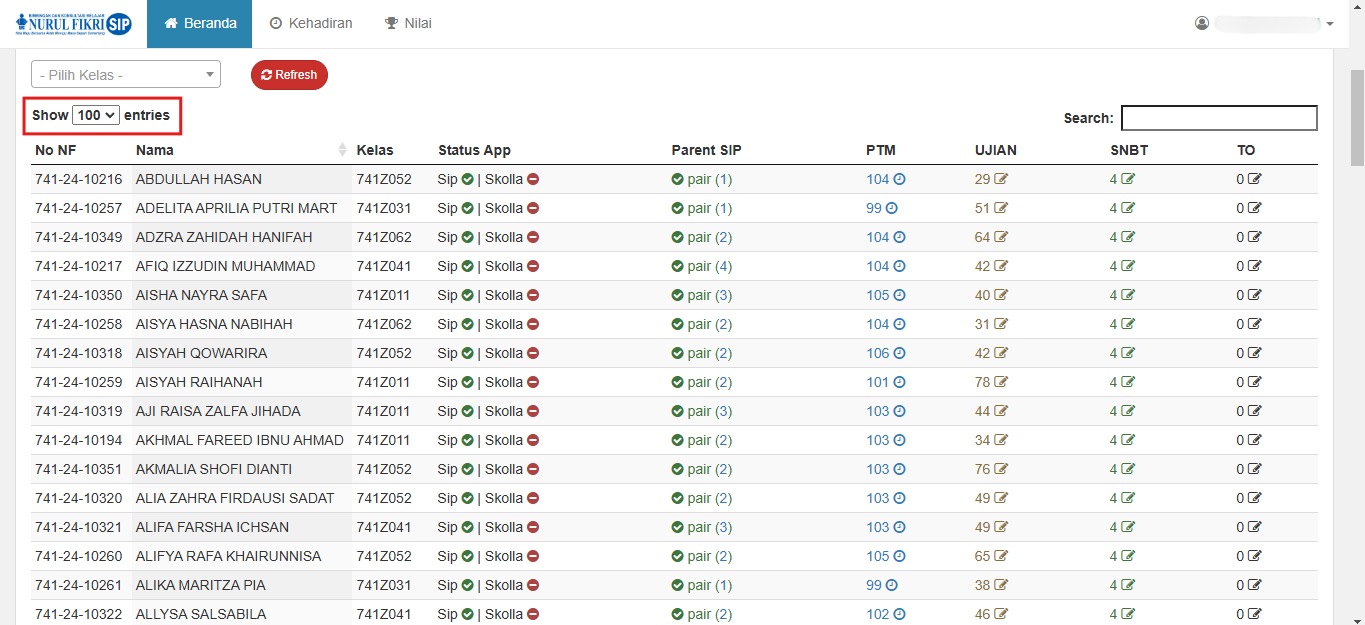 5. Sebagai alternatif, anda bisa melihat semua informasi siswa dengan cara menekan dropdown "SHOW ENTRIES" dan sesuaikan berapa data yang anda inginkan.