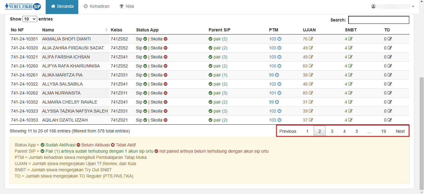 4. Anda dapat melihat semua informasi siswa pada halaman lain dengan menekan tombol yang ditandai dalam kotak merah di bawah ini.