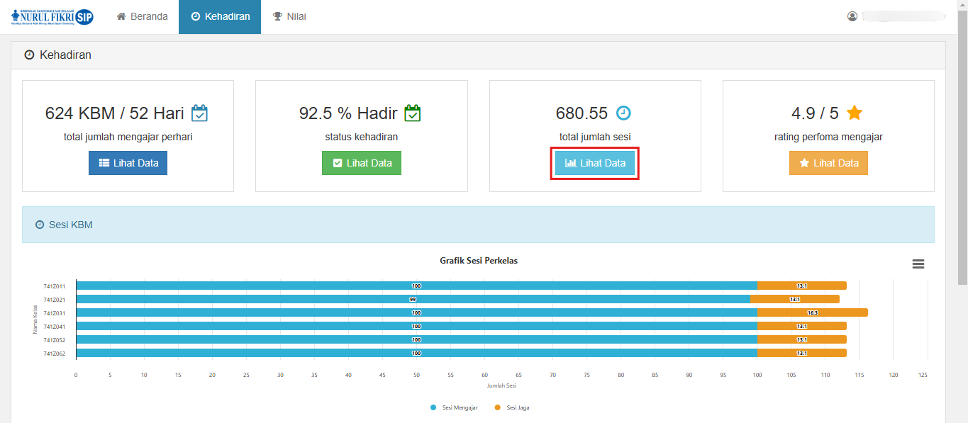 3. Pada panduan kali ini, kita akan melihat semua jumlah sesi yang telah dilakukan dalam bentuk grafik dan tabel. Anda dapat menekan tombol "LIHAT DATA" untuk melihat detailnya.