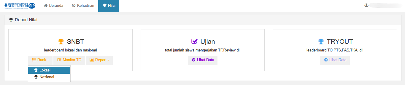 2. Pada halaman dashboard, Anda bisa menekan "MENU NILAI".
