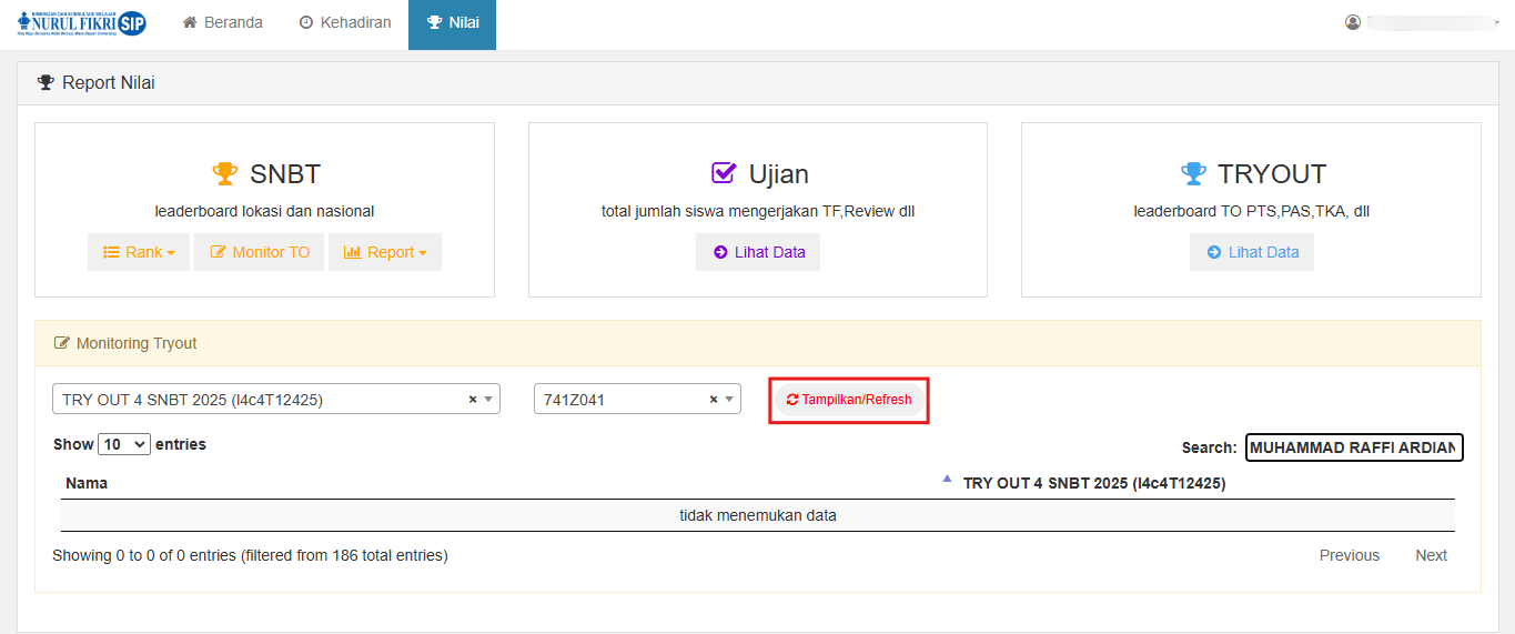 5. Tekan tombol "TAMPILKAN / REFRESH" untuk menampilkan data siswa yang bersangkutan.