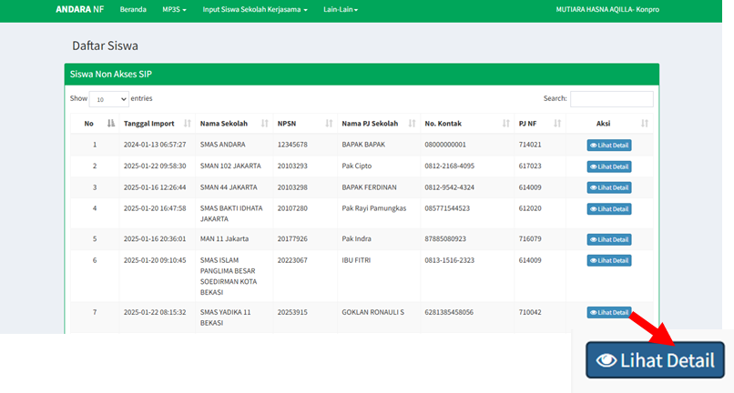 1. Masih di halaman Beranda, klikĀ "Lihat Detail" pada salah satu siswa.