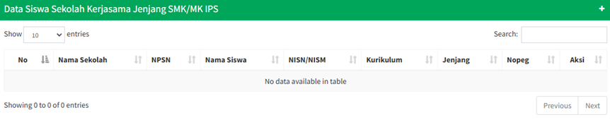 5. Maka, data sekolah yang sudah dimasukkan tadi tersimpan di "tabel Data Siswa Sekolah Kerjasama Jenjang SMK/MK IPS".