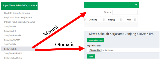 2. Pilih jenjang, misalnya SMK/MK IPS, lalu masukkan data secara otomatis atau manual.