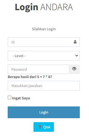 3. Pada "form Login", Anda juga dapat melihat pertanyaan-pertanyaan yang sering ditanyakan pada "QnA" atau klik "Login" untuk masuk ke sistem ANDARA.