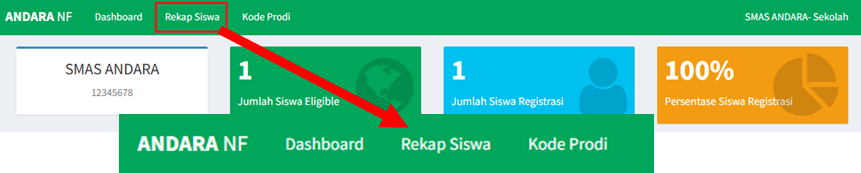 1. Pada halaman Dashboard, klik "navbar menu Rekap Siswa".