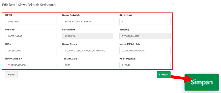 4. Isilah semua form yang tersedia pada popup berikut ini dengan benar, lalu klikĀ "Simpan".