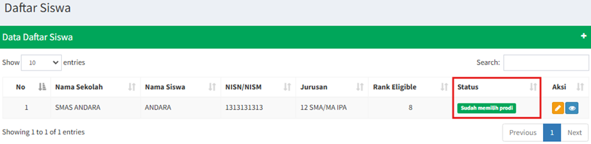 Status ini dapat berubah ketika siswa sudah memilih prodi.