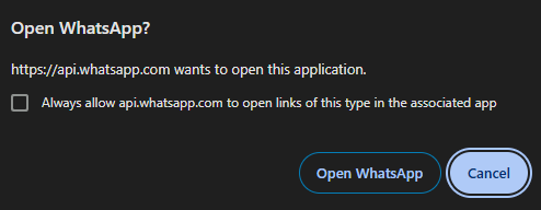 4. Maka anda akan diarahkan ke WhatsApp melalui popup di bawah ini, klik "Open WhatsApp".