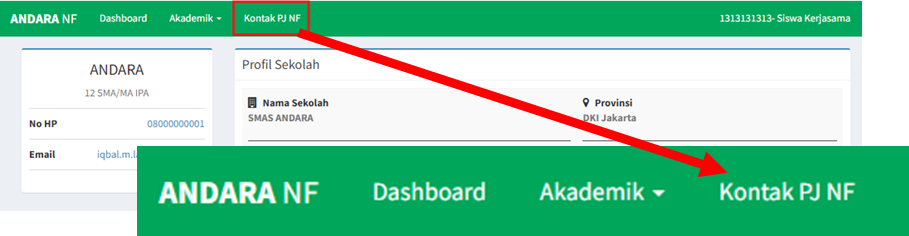 3. Klik ikon berikut ini untuk menghubungi PJ NF yang bersangkutan.