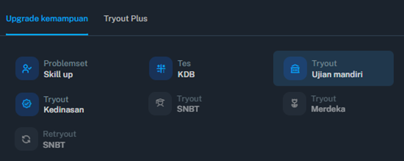 1. Pada halaman Dashboard, klik Tryout Ujian Mandiri pada kategori Upgrade Kemampuan.