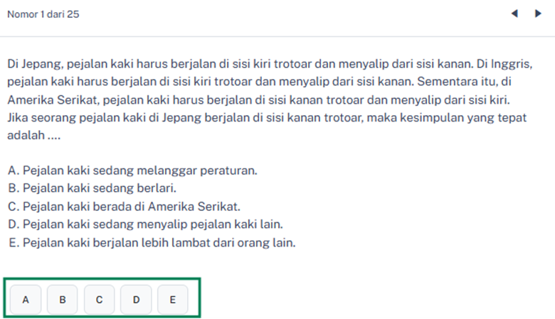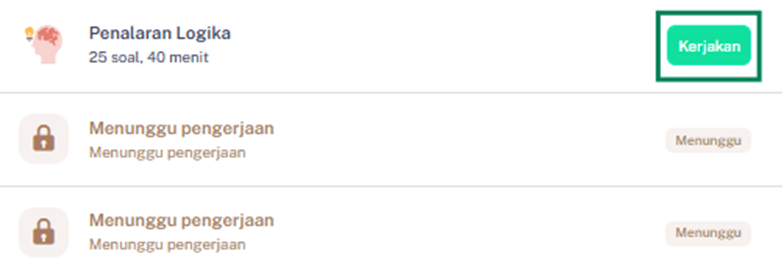 Usahakan mengerjakan semua subtes sebelum timer hitung mundur global berakhir dan timer akan tidak akan berjalan, sebelum siswa menekan tombol Kerjakan di subtes pertama.