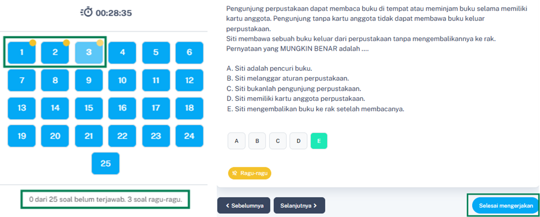 4. Anda bisa klik Ragu-Ragu untuk menandai soal yang belum terjawab.