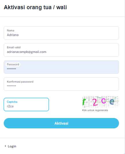 6. Setelah memasukkan semua data dan kode captcha, tekan tombol "AKTIVASI".