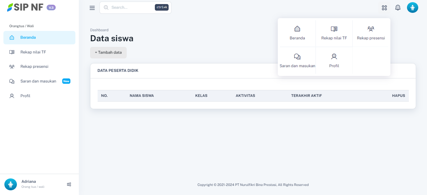 Untuk mengakses dashboard LMS, silahkan kunjungi di : https://emodul.bimbelnurulfikri.id/belajar/