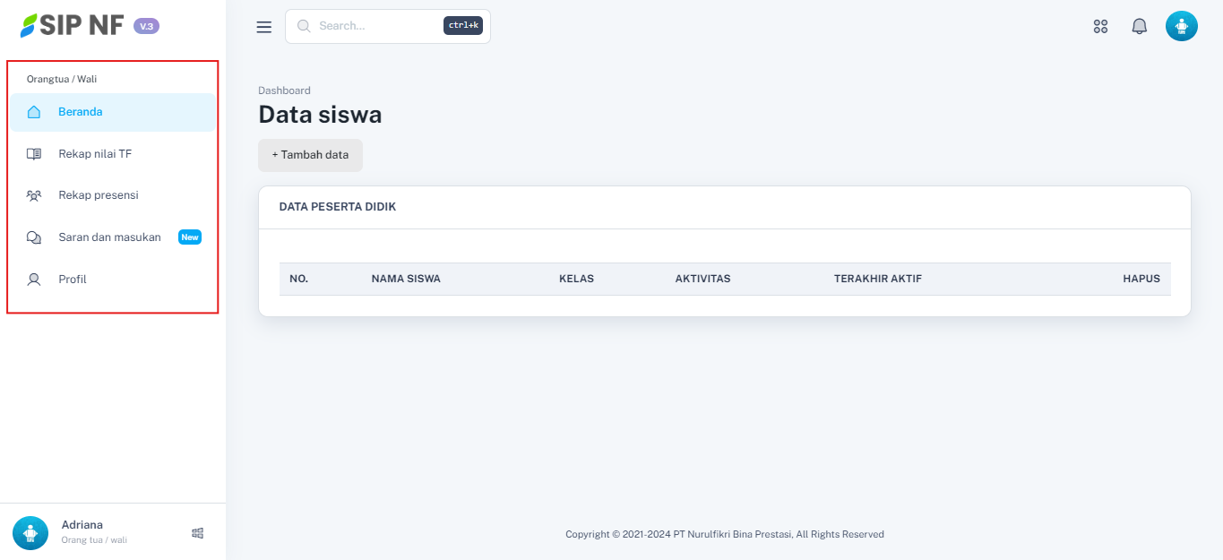3. Atau anda bisa melihat semua fitur langsung di dashboard dengan memperhatikan sidebar sebelah kiri.