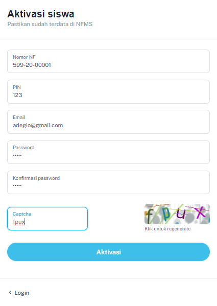 6. Setelah memasukkan semua data dan kode captcha, tekan tombol "AKTIVASI".