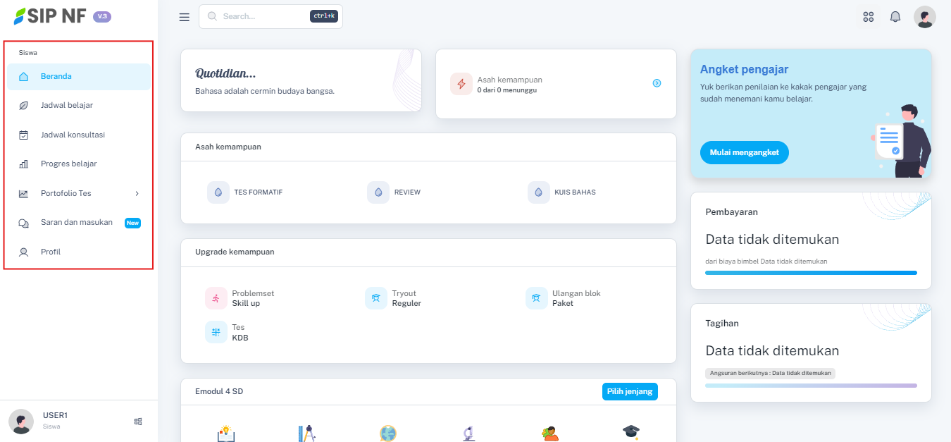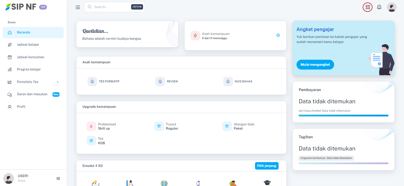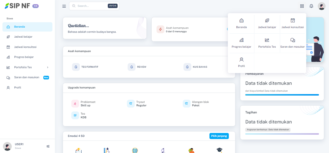 Untuk mengakses dashboard LMS, silahkan kunjungi di : https://emodul.bimbelnurulfikri.id/belajar/