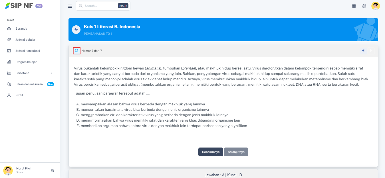 6. Untuk memilih langsung soal dari nomor lain secara acak kamu dapat menggunakan shortcut. Caranya adalah kamu bisa menekan ikon yang sudah ditunjukkan dengan kotak merah pada contoh di bawah ini.