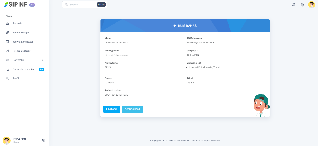 2. Tekan tombol "LIHAT SOAL" untuk mengakses pertanyaan yang tadi diujikan.