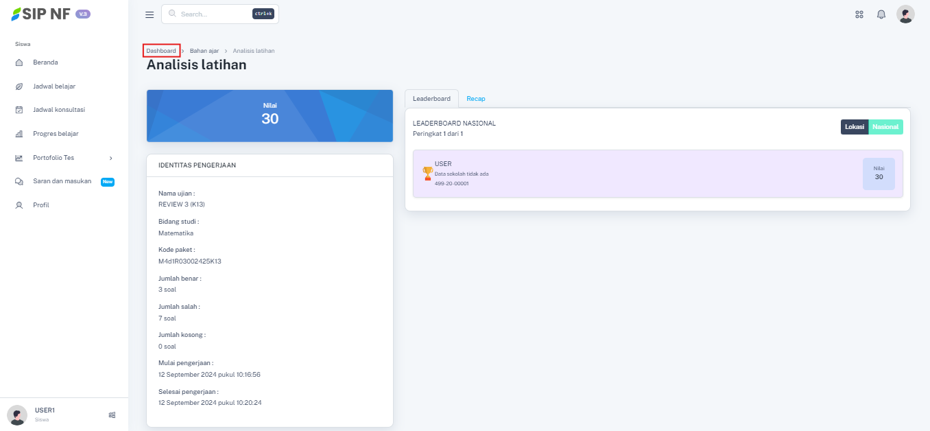 7. Kalau kamu ingin kembali ke halaman dashboard, kamu bisa menekan hyperlink "DASHBOARD".