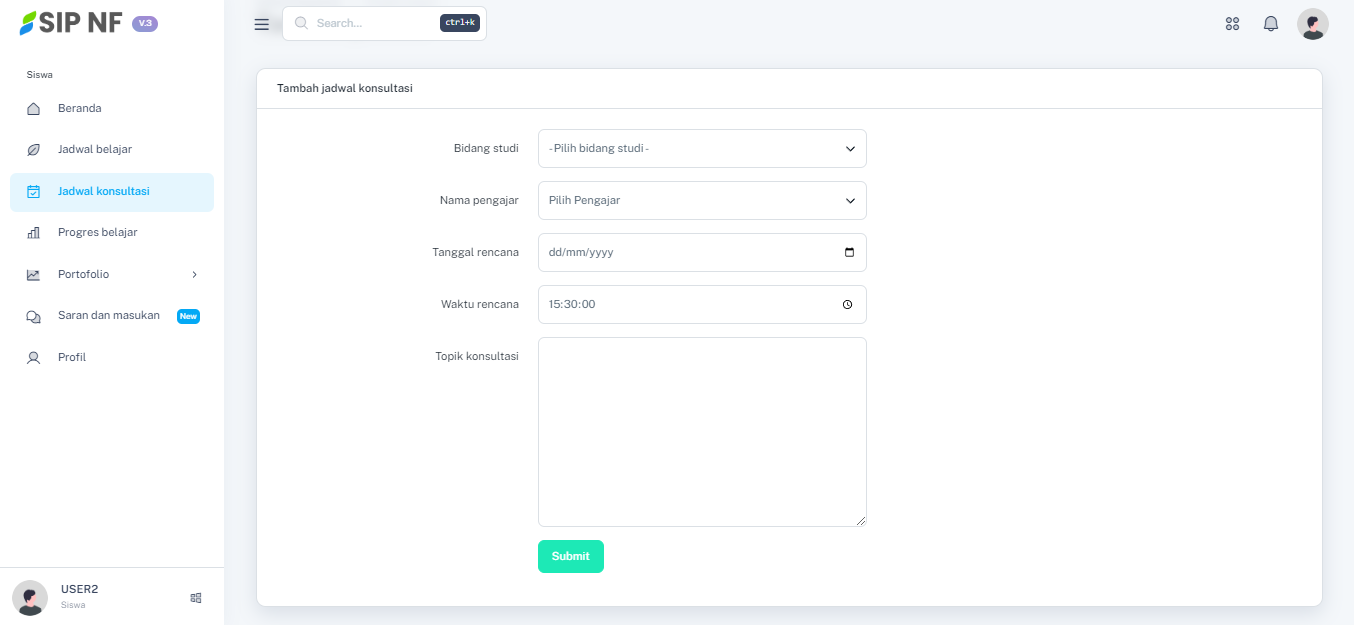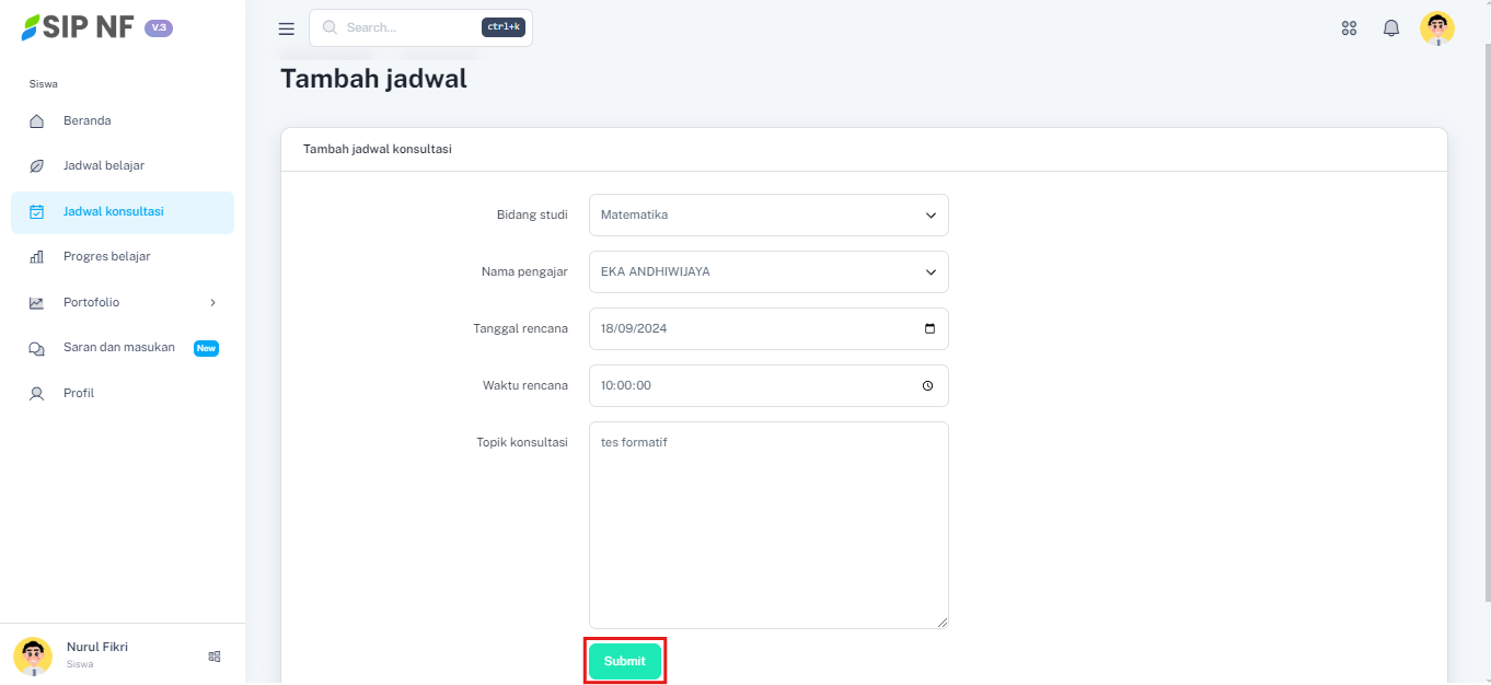 2. Jika sudah, kamu diwajibkan untuk mengisi form pendaftaran, mulai dari kolom bidang studi, nama pengajar, tanggal rencana, waktu rencana, dan topik konsultasi seperti di bawah ini: