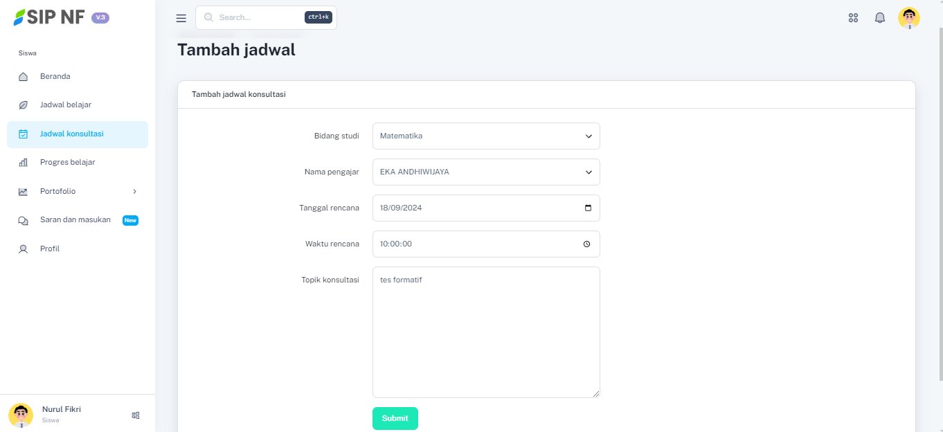 2. Jika sudah, kamu diwajibkan untuk mengisi form pendaftaran, mulai dari kolom bidang studi, nama pengajar, tanggal rencana, waktu rencana, dan topik konsultasi seperti di bawah ini: