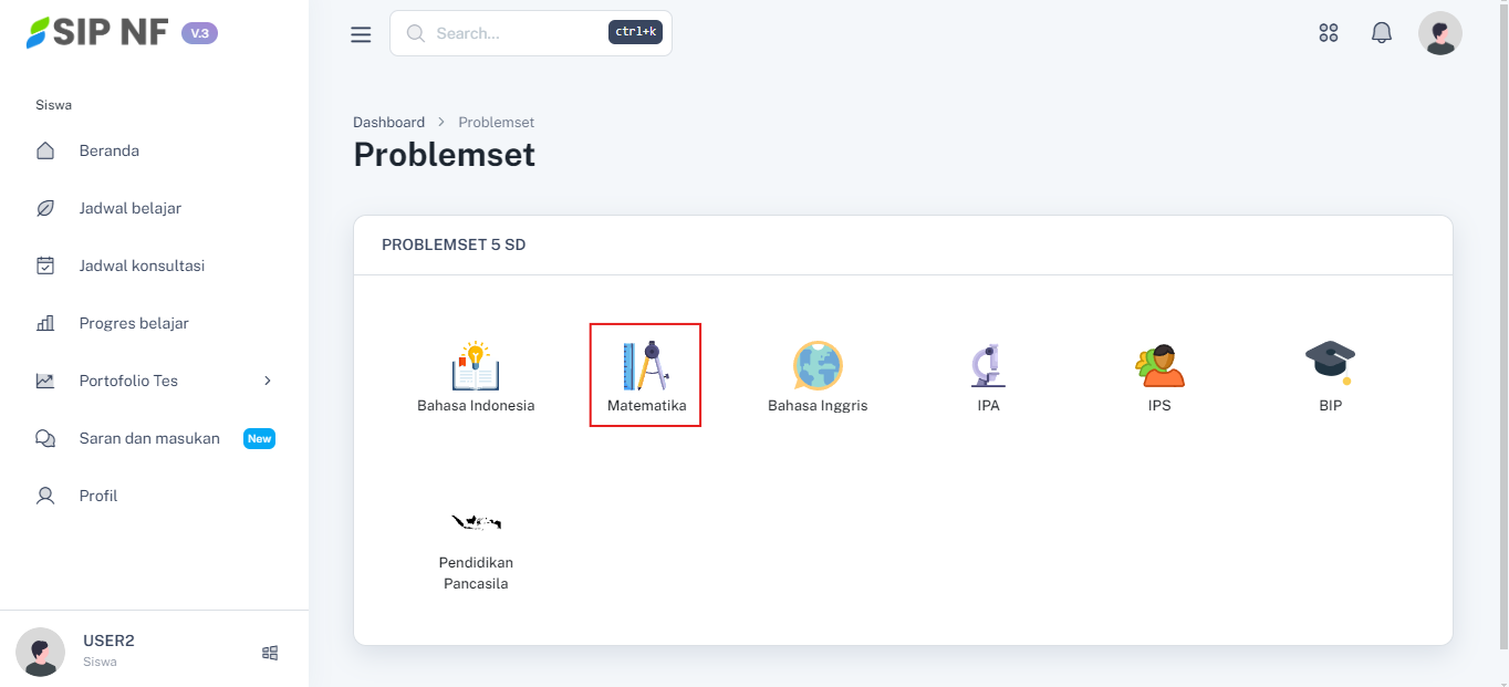 3. Untuk panduan kali ini, kita akan memulainya dari mata pelajaran "MATEMATIKA".