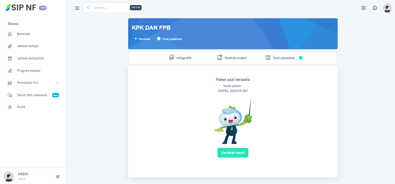3. Untuk mengakses semua soal pilihan ganda, kamu dapat menekan tombol "KERJAKAN SOPEL".