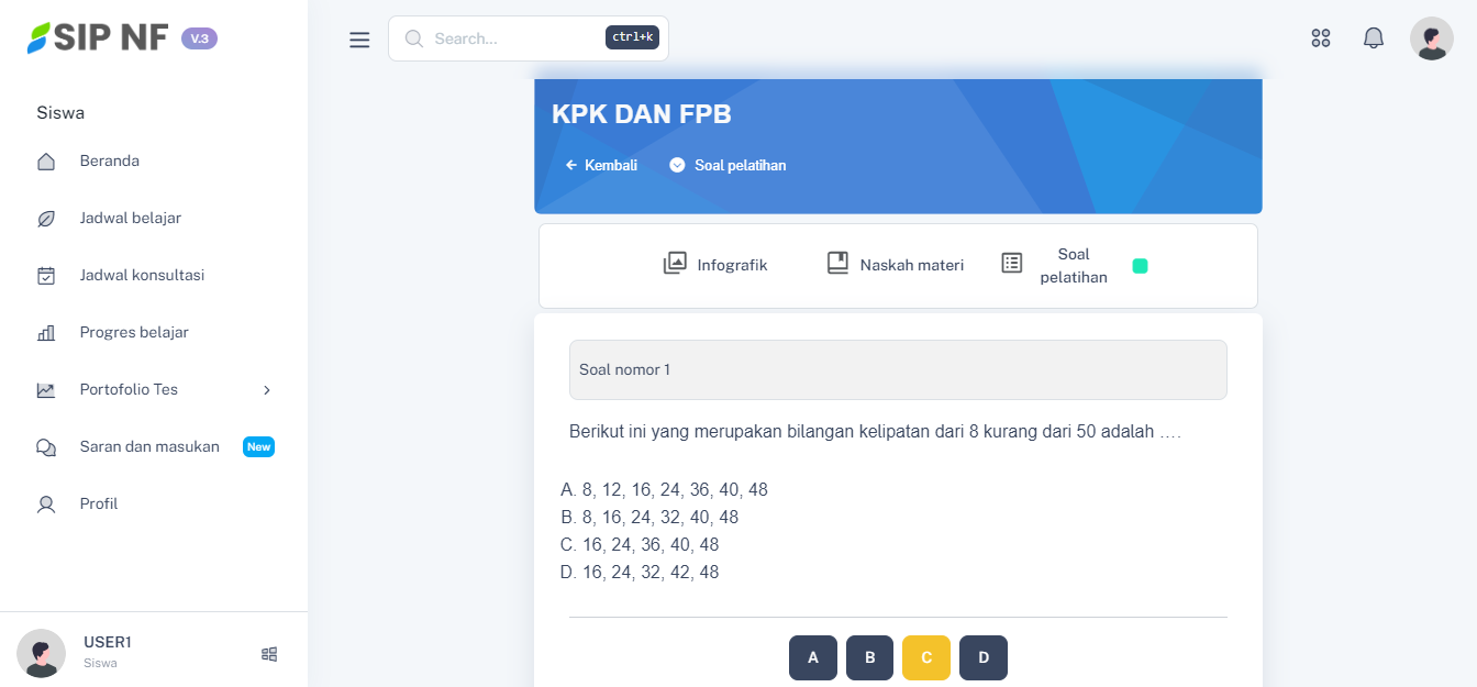 1. Masih pada halaman daftar isi modul, kamu bisa menekan tombol "SOAL PELATIHAN".