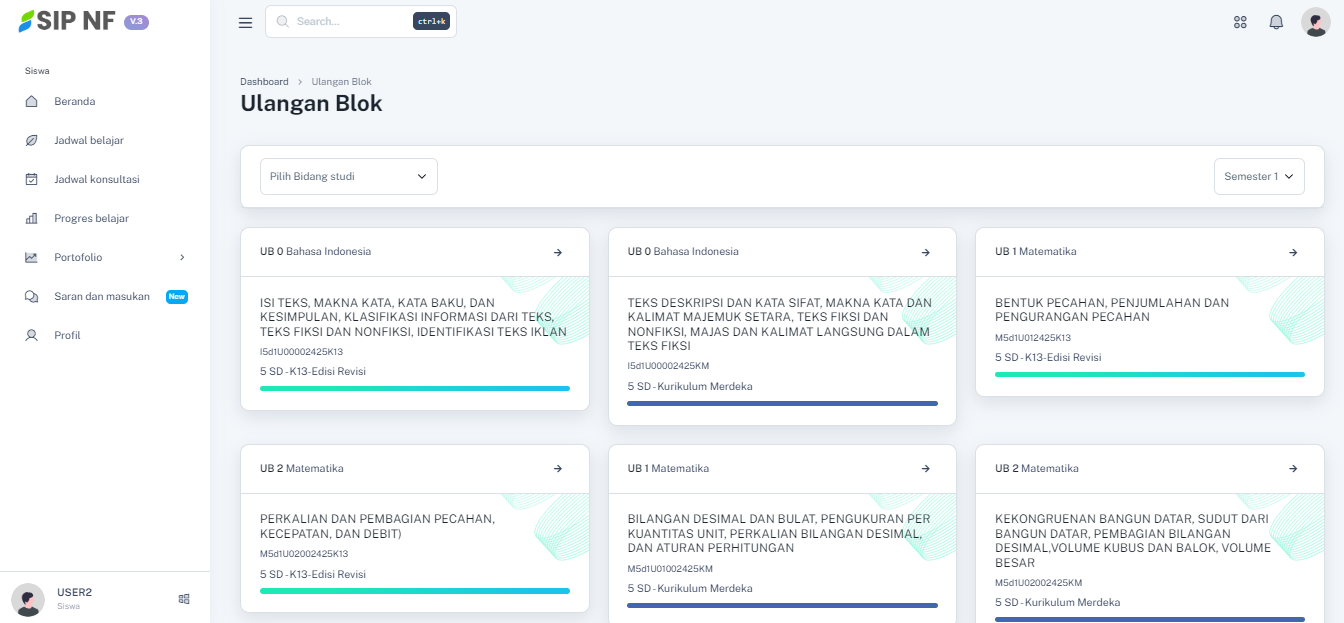 Pada panduan kali ini, kita akan mulai mengakses fitur ulangan blok yang berada di dashboard.