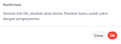Perhatian! Akan muncul popup seperti dibawah ini yang menanyakan apakah kamu yakin ingin mengirimkan atau tidak. Jika yakin, kamu bisa menekan tombol "OK" dan jika tidak kamu bisa menekan tombol "CLOSE".