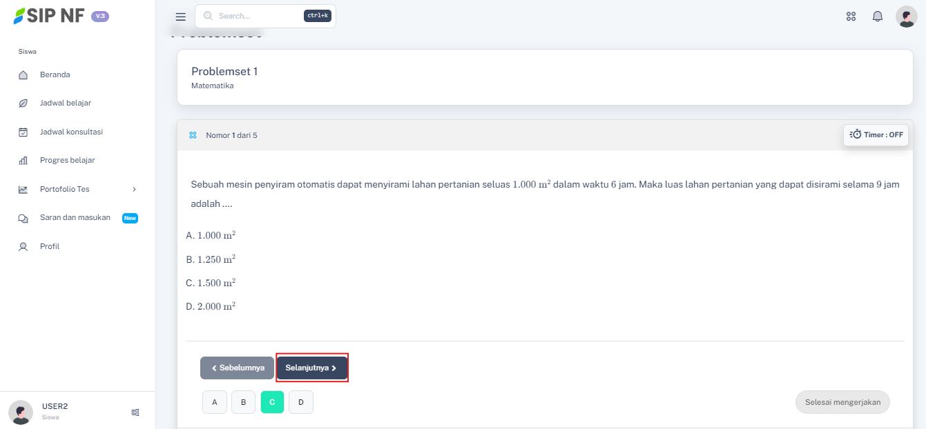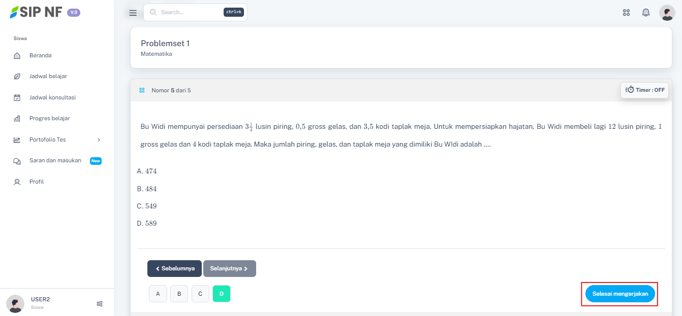 4. Coba lanjutkan menjawab sampai soal terakhir. Jika sudah selesai menjawab semuanya, kamu bisa menekan tombol "SELESAI MENGERJAKAN".