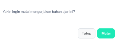 Perhatian! Akan muncul popup seperti di bawah ini yang menanyakan apakah kamu yakin ingin melanjutkan atau tidak. Jika yakin, kamu bisa menekan tombol "MULAI" dan jika tidak kamu bisa menekan tombol "TUTUP".