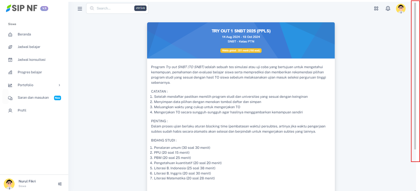 2. Maka akan muncul halaman detail informasi Try Out SNBT 2025 (PPLS). Kamu bisa melakukan scrolling sampai bawah untuk melihat detail selengkapnya.