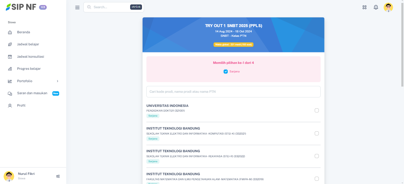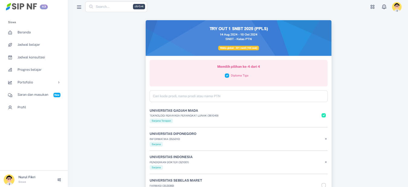 Usahakan memilih prodi dan menjawab soal secara cepat sebelum waktunya habis.