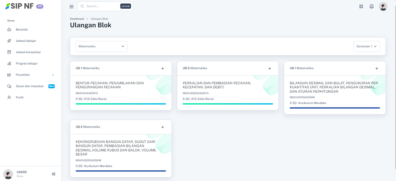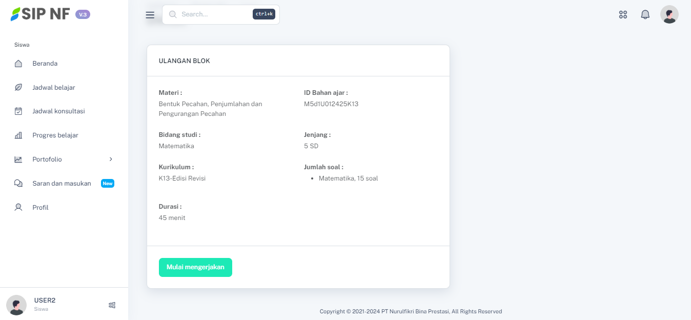 Masih pada halaman soal ulangan, untuk panduan kali ini, kita akan memulainya dari bidang studi "MATEMATIKA".