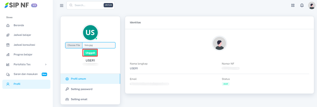 5. Tekan tombol "UNGGAH" untuk menyimpan perubahan tersebut.