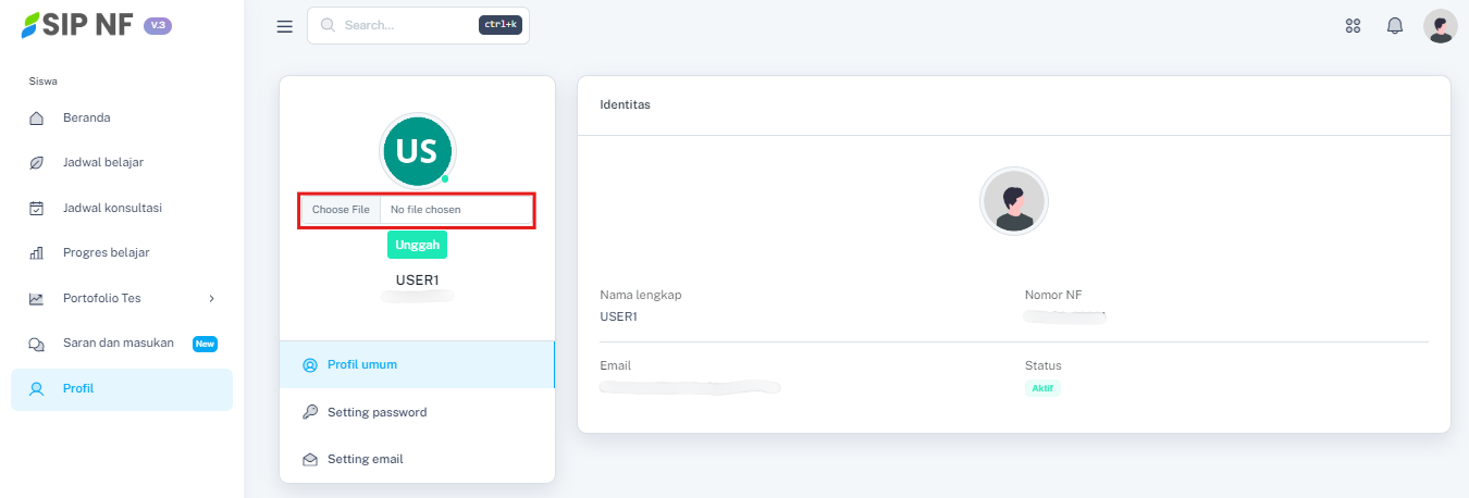 3. Untuk mengubah foto profile, kamu dapat memilih tombol "CHOOSE FILE".