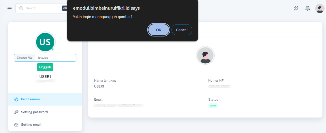 1. Pada dashboard, kamu bisa menekan "FOTO PROFIL".