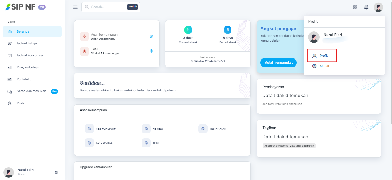 Untuk mengakses dashboard LMS, silahkan kunjungi di : https://emodul.bimbelnurulfikri.id/belajar/