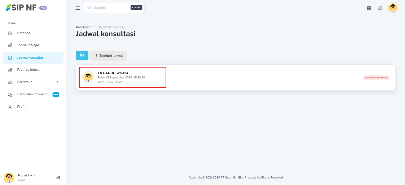4. Jika sudah yakin, kamu bisa menekan tombol "OK" dan jika tidak kamu bisa menekan tombol "TUTUP". Setelah menekan tombol "OK", kamu akan diarahkan kembali ke halaman awal jadwal konsultasi.
