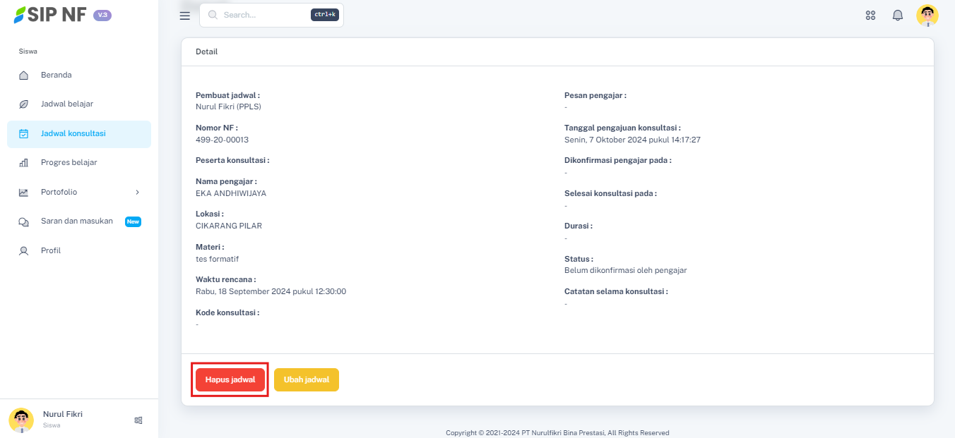 2. Untuk mengubah data jadwal, kamu perlu menekan tombol "HAPUS JADWAL".
