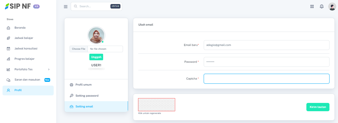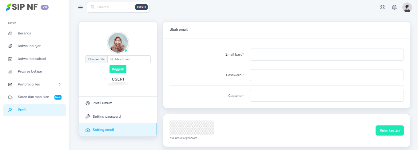 1. Sama seperti panduan mengubah password, masih di halaman profil, pilih menu "SETTING EMAIL" untuk mengakses fitur ubah email.