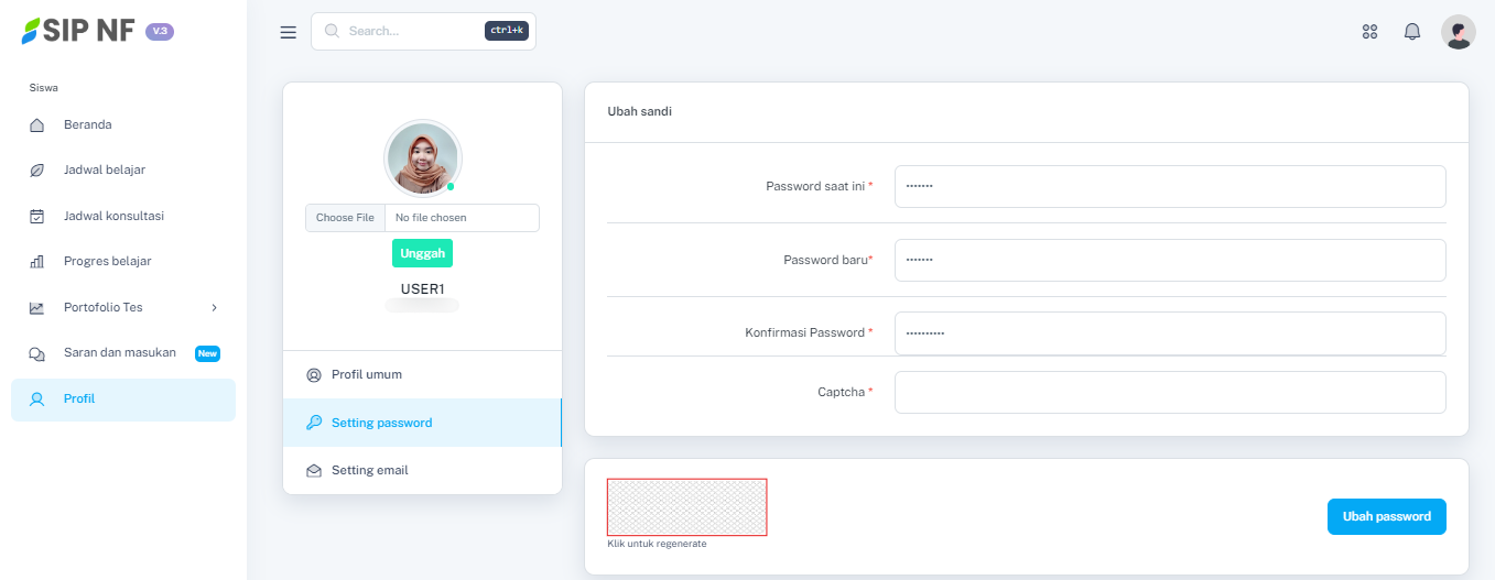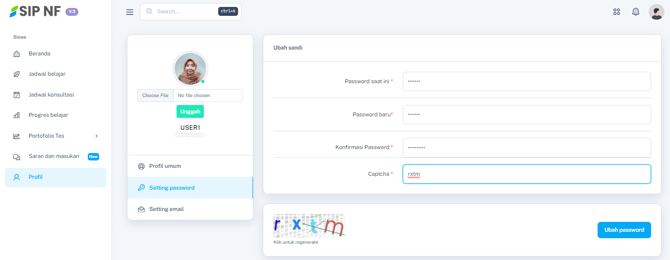 4. Setelah memasukkan semua data dan kode captcha, tekan tombol "UBAH PASSWORD".